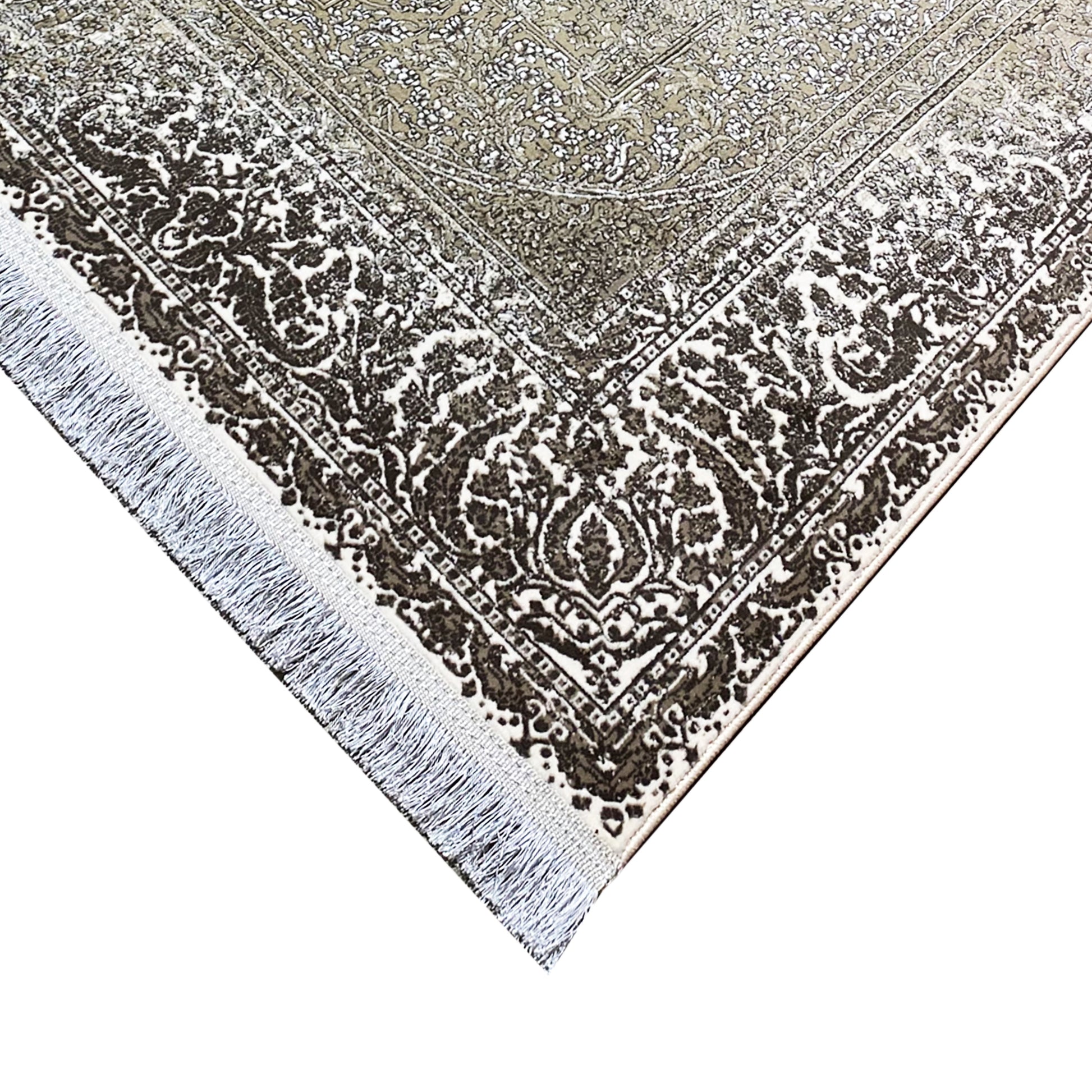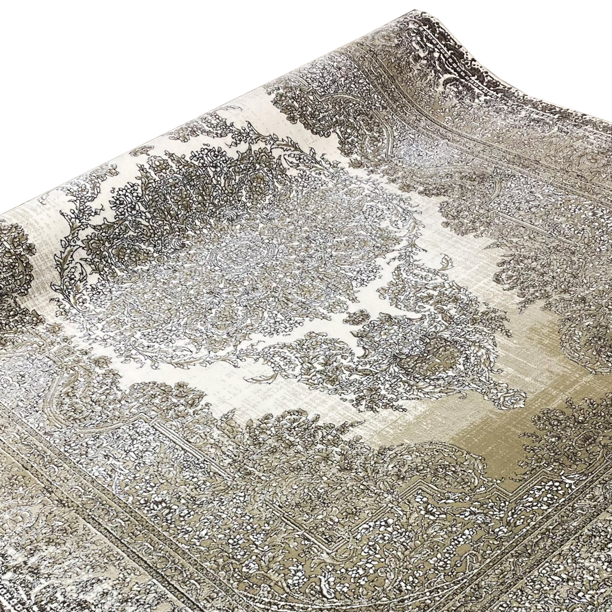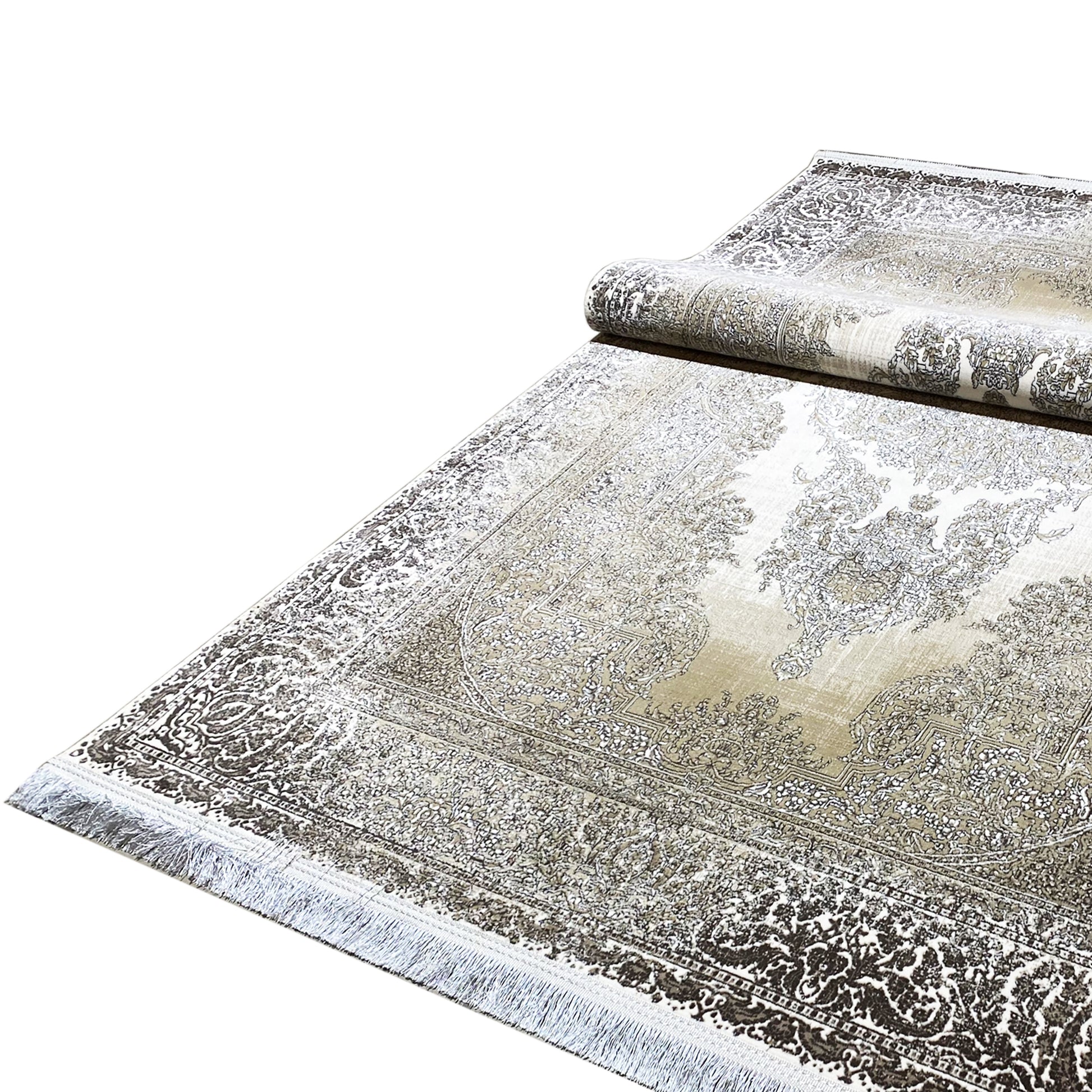 Geef uw huis een vleugje tijdloze elegantie met dit klassieke tapijt. Het traditionele Perzische patroon met een kunstig centraal medaillon en een versierde rand creëert een luxueuze blikvanger. Met zijn afmeting van 170x240cm is het perfect om woon- of slaapkamers te verfraaien. Gemaakt van duurzaam en onderhoudsvriendelijk acryl, combineert dit crème-zilveren tapijt esthetiek en functionaliteit en past het naadloos in traditionele of moderne interieurstijlen.