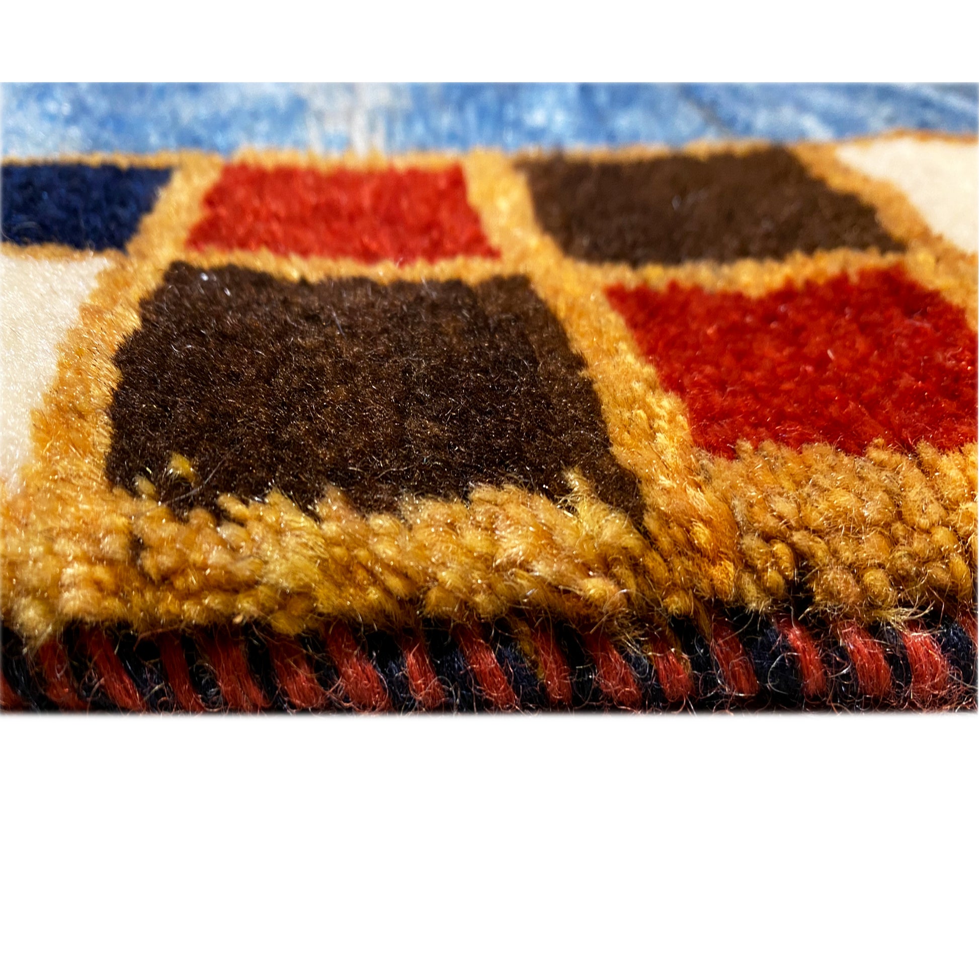 Deze unieke Leeuw-Gabbeh-tapijt, met de hand geknoopt van handgesponnen, plantaardig geverfde wol, valt op door zijn traditionele decoratiestijl en een opvallend leeuwenmotief. Met een afmeting van 179x124cm is dit blauwe tapijt een krachtig statementstuk dat elke ruimte karakter geeft en duurzaamheid garandeert.