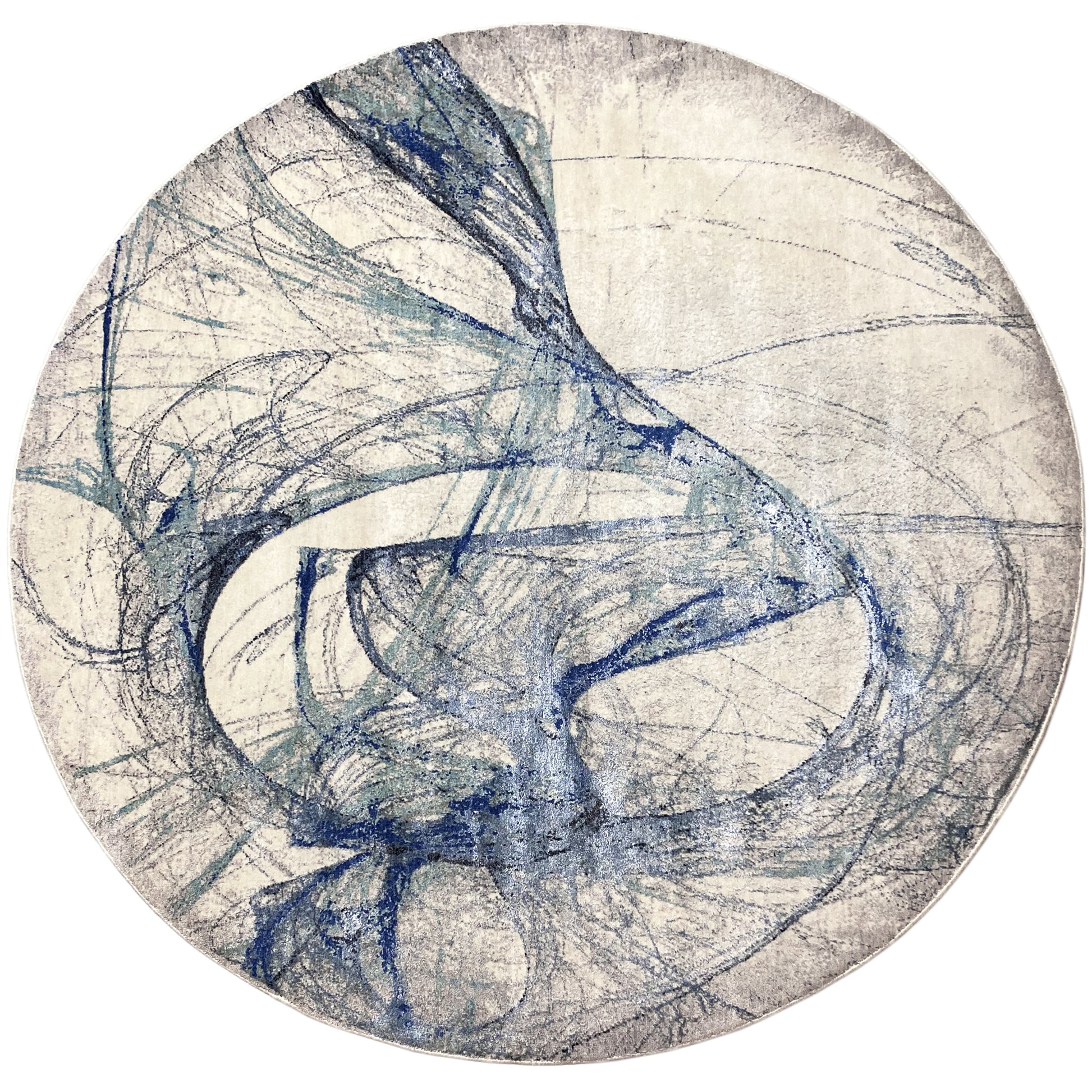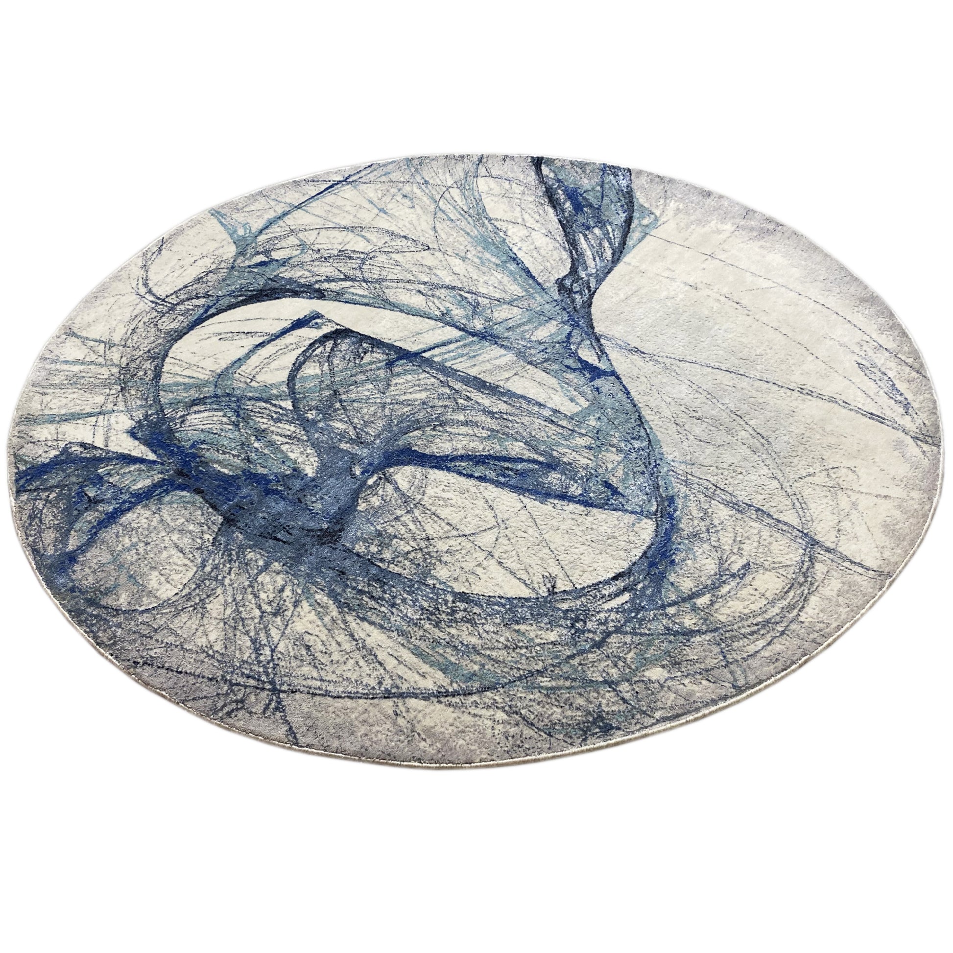 Dit met de hand geknoopte, ronde tapijt van een hoogwaardige mix van handgesponnen wol en viscose brengt een moderne decoratiestijl in uw huis. Het abstracte patroon in blauw en beige creëert een dynamische, artistieke uitstraling en maakt het een blikvanger in elke kamer. Met een diameter van 203 cm is dit tapijt perfect voor woon- of slaapruimtes om een unieke en stijlvolle sfeer te creëren.