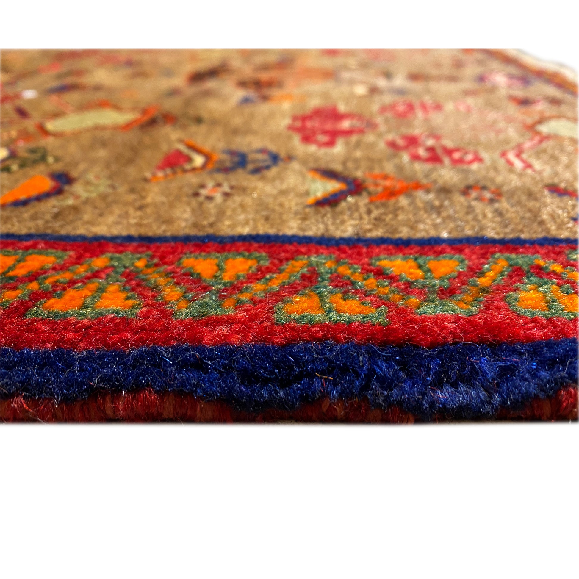 Deze verfijnde, met de hand geknoopte Poshti-tapijt in warm bruin met kleurrijke accenten is een authentiek voorbeeld van het vakmanschap van zuidelijke Iraanse nomadische volkeren. Vooral de tapijten geweven door de "Tork"-stamgroep worden liefdevol "Torkey" genoemd. Met zijn afmetingen van 63x61 cm is dit stuk ideaal om elke ruimte een vleugje traditionele decoratie en gezelligheid te geven, geaccentueerd door een charmant levensboompatroon met vogelmotieven. Het robuuste vakmanschap van wol en katoen en de levendige kleuren maken het een duurzaam en stijlvol accent.