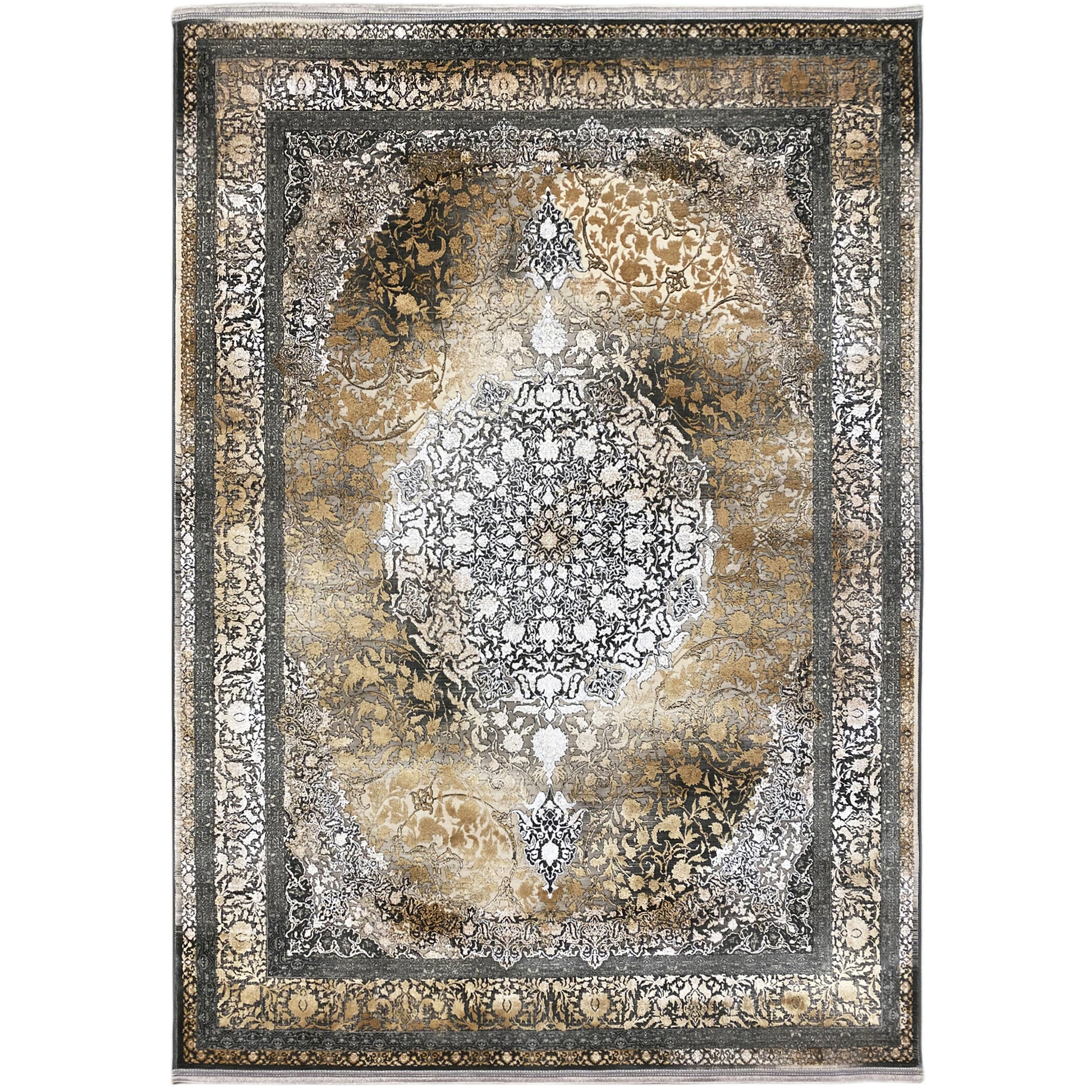 Geef uw huis een vleugje vintage elegantie met dit prachtige moderne klassieker tapijt. Het kunstzinnige centrale medaillon steekt af tegen een verbluffende rookgoudbruine achtergrond met een subtiele kleurverloop en een gebruikte look. Gemaakt van 100% hittebehandeld acryl, is dit zachte en duurzame tapijt perfect voor drukbezochte ruimtes en combineert het luxe stijl met moderne veerkracht. De royale afmeting van 170x240cm is ideaal om uw woon- of slaapkamer een verfijnde blikvanger te geven.