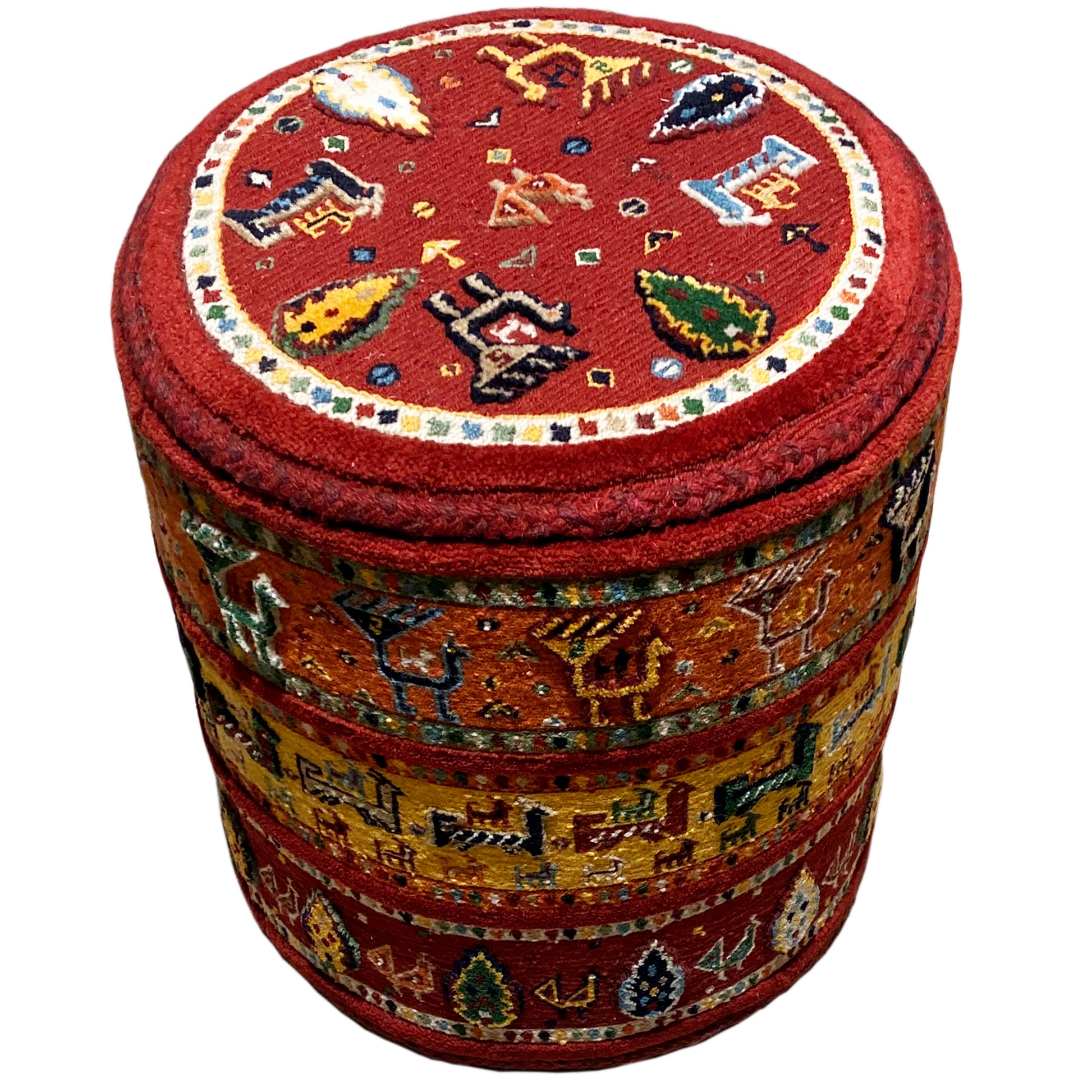 Verfraai uw huis met deze prachtige Soumakh kruk, zorgvuldig gemaakt van met de hand gesponnen, plantaardig geverfde wol. De felrode basiskleur en de complexe geometrische en tribale patronen weerspiegelen een rijke traditionele interieurstijl. Met de afmetingen 40x40x50cm biedt deze charmante en duurzame kruk veelzijdige functionaliteit als extra zitplaats of decoratief accent en geeft elke woonruimte een unieke toets van vakmanschap en comfort.